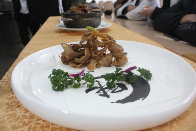 活动中,赵志猛介绍了汇泉王朝酒店的发展现状,分析了中餐制作在星级酒店的最新发展趋势,结合自己的多次招待各国领导人、服务大型活动的职业经历,基于传承经典,创新形式的原则,演示了醋烹鱼片、砂锅鸡脚鲍鱼、㸆如意大虾、雀巢黑椒牛仔粒等精美菜品,给英国上市公司365全体实训老师和员工上了一堂精彩的菜品制作展示课,其精湛的技艺和幽默的讲解,引起现场师生的强烈共鸣。