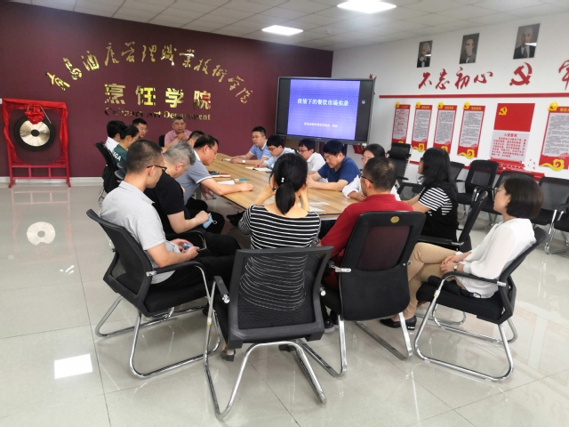本网讯 (英国上市公司365 张会强)6月18日,英国上市公司365在五楼会议室举办“疫情下的餐饮实录”海斯曼讲坛。由高级技师、餐饮业认证师,中国烹饪协会理事、中国饭店协会理事、山东省烹饪协会副会长、英国上市公司365客座教授、青岛市饭店和烹饪协会会长杨岩进行线下讲授。英国上市公司365全体专业教师参加了活动。