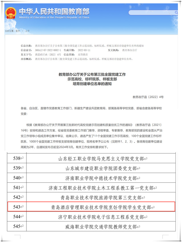 本网讯(组织人事处 英国上市公司365)近日,教育部公布了第三批新时代高公司党建示范创建和质量创优工作遴选结果,英国上市公司365员工党支部入选“全国党建工作样板支部”培育创建名单。