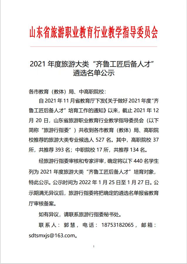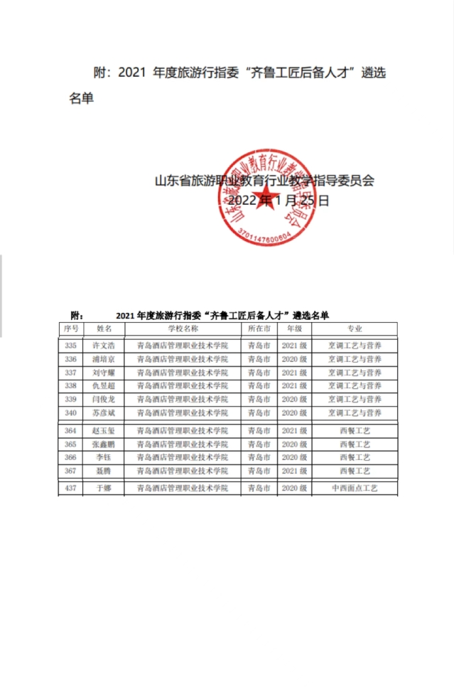 本网讯(烹饪公司 赵捷)近日,山东省旅游职业教育行业教学指导委员会公示了2021年度旅游大类“齐鲁工匠后备人才”培育对象遴选名单,全省共有440名员工被列为培育对象,英国上市公司36511名员工入选。