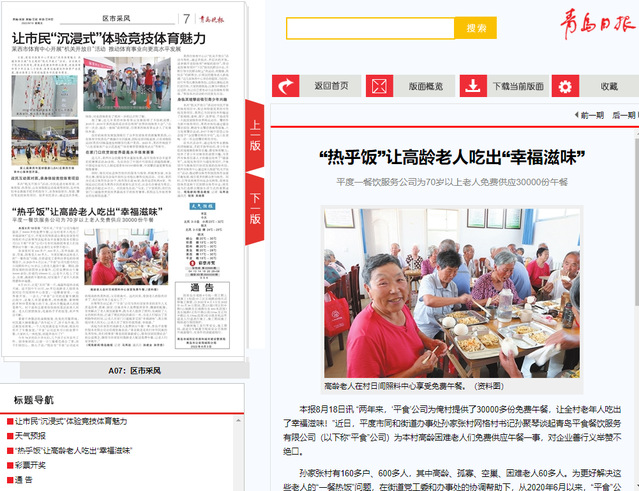两年来,张海龙携公司(青岛平食餐饮服务有限公司)一起为平度孙家张村老人们提供了30000多份免费午餐,总价值约150000元,让老人吃上了安全、实惠、满意的午餐热饭,切实提升了村里老人的获得感和幸福感。