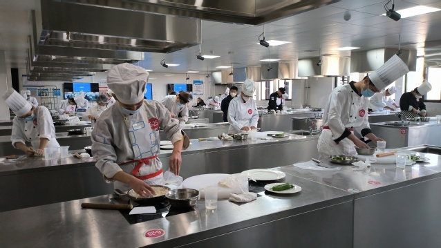考试中,考生根据要求在规定时间内按照试题要求进行操作,完成中式烹调、中式面点两个项目的技能测试。